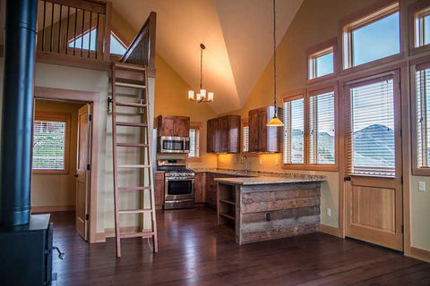 Designed by Red Ridge Design and General Contractor services provided by LG Builders – General Contractors. This Mountain 2000 square foot retreat features efficient spaces in a compact footprint. Utilizing reclaimed and new materials, this home was built in 7 months start to finish.